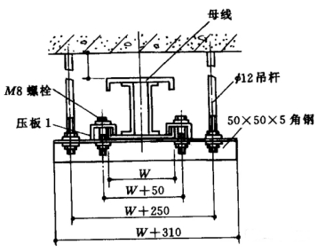 4.3母線槽懸掛吊裝。(圖4、圖5)吊桿直徑應與母線槽分量相適應,螺母應能調理。