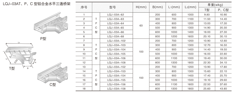 LQJ-03AT、P、C型鋁合金水平三通橋架